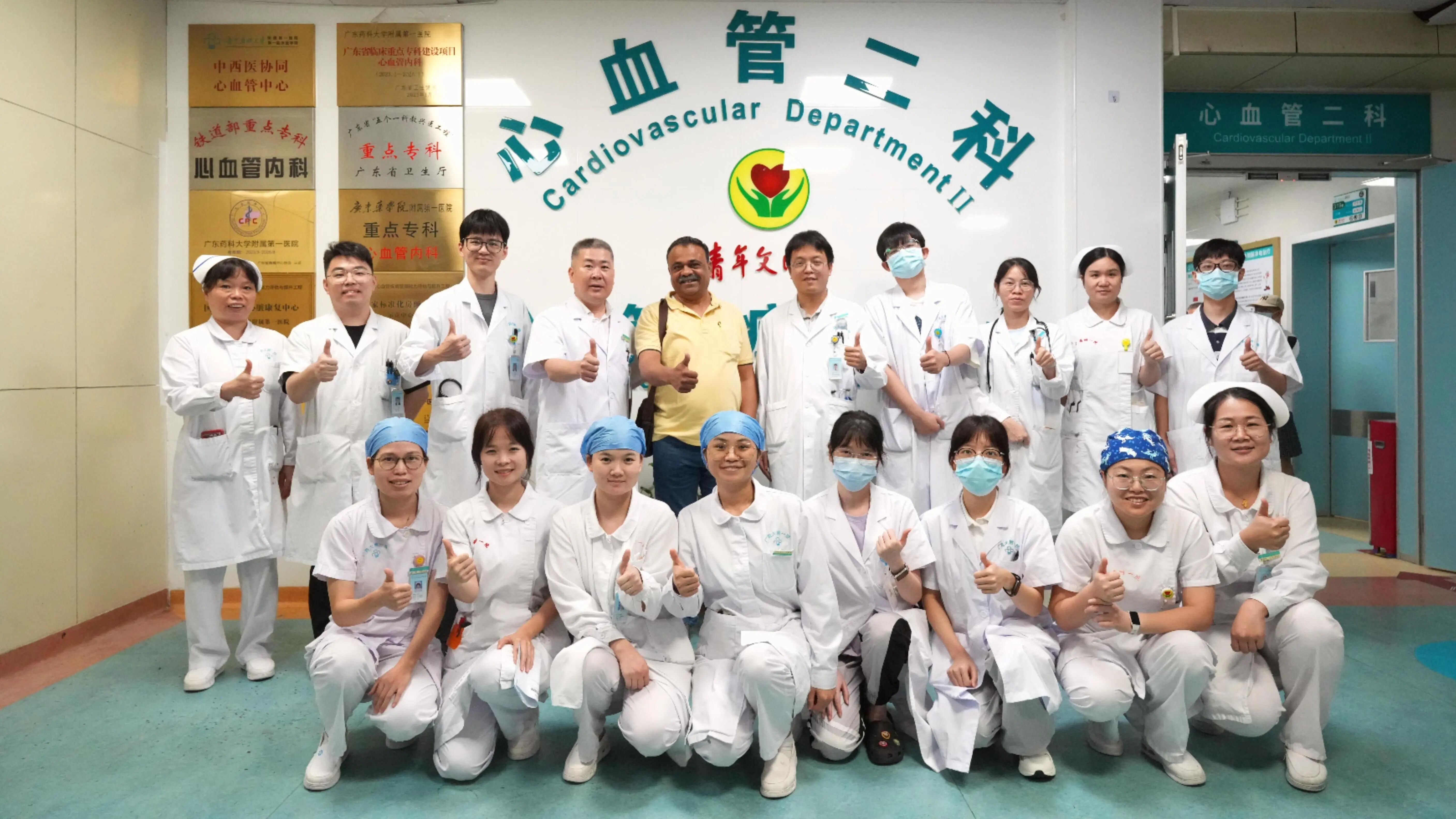一年前,PRASHANT先生在参加广交会期间,突发大面积心肌梗死,广药大附一院胸痛中心团队上演22分钟“生死时速”,成功挽救了他的生命。如今,他再度来华参展,特地来医院看望给他第二次生命的医护团队。